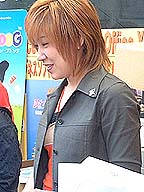| ■声を聞くとわかる? ヤマギワソフト館の店頭でCD購入者にサインしてるこの人は誰? 声はどこかで聞いたことが・・・ あのポケットモンスターのサトシ君役の松本梨香さんです。 最近の声優さんは本業以外にも活動してますね。 |
