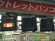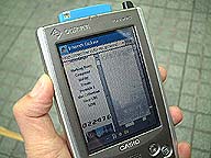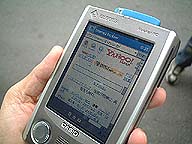 | ソフマップの店頭にあるテレビの上にアクセスポイントが置いてありそこと通信します。 | Bluetoothの通信できる距離は約10メートルと短め、速度は約1Mbps(実効速度は721kbps)です。ハードの性能からこのマシンでは100kbpsの速度での通信となります。 | 自分のHPをアクセスしてみました。 これからはモバイル環境を意識した構成を考えないと・・・ |