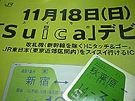 | ■タッチ&ゴー JR東日本の新しい改札システム「Suica」が18日から稼働しました。 早速、定期券を交換して試してみました。 財布に入れたままセンサー部にタッチするだけで改札を通れます。また、お金をチャージしておけば改札を通るだけで精算が済みます。秋葉原の駅はいつも乗り越し精算の列が凄いですが、これで行列とはおさらばですね。 |