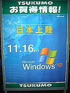 | ■WindowsXP深夜発売! PC不況が叫ばれている中、久々の大型商品マイクロソフトの 「WindowsXP」が発売されました。 アキバでは恒例のカウントダウンが行われ、各ショップともタレントを呼んだり豪華商品が当たる抽選会を実施してお祭り騒ぎです。 今回のアップ情報は「WindowsXP深夜発売」です。 |
