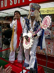 | ■ラーメンロック とんこつラーメンの火付け役「なんでんかんでん」の川原社長がカブキロックスの氏神一番と結成したユニット。その名もラーメンロック。 最近は「¥マネーの虎」に出演している川原社長がなんと歌手デビューです。 石丸電気でCDデビュー記念キャンペーンと称してプロモーションを敢行。CD購入特典はなんでんかんでんのラーメン一杯無料サービス! |